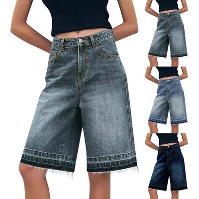 Women Casual Shorts Baggy Streetwear Knee Length Denim Short Pants Summer Fashion Daily Wide Leg Short Jeans