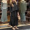 Women's Loose Comfortable Casual Fashionable Solid Color Long Sleeved Top Solid Color Skirt Two-piece Set