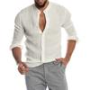 Autumn and Winter V-neck Linen New Cardigan Stand-up Collar Long-sleeved Men's Shirt