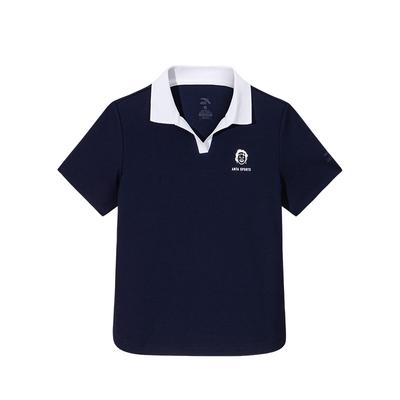 Anta Color Block Comfortable Breathable Versatile Short Sleeve Polo Shirt Women Tops Midnight-Blue 162528122-2