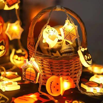 Halloween Miniature Ornament Pumpkin Resin Figurines Ornaments With String Light Halloween Garden Adornments Ghost Doll Miniatur