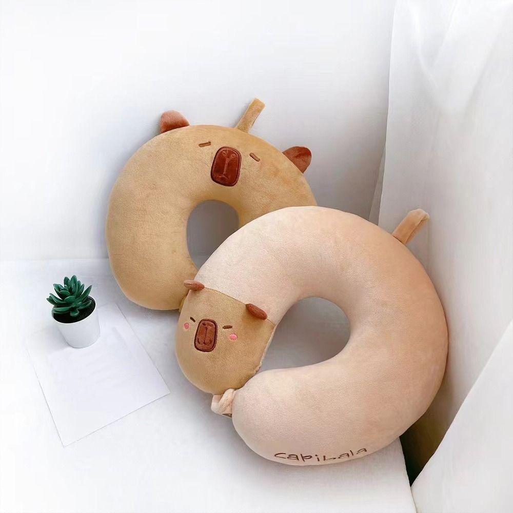Portable Cotton Capibara Neck Pillow U-Shape Head Rest Travel Pillows Super Light Press To Inflate Cervical Pillow Train