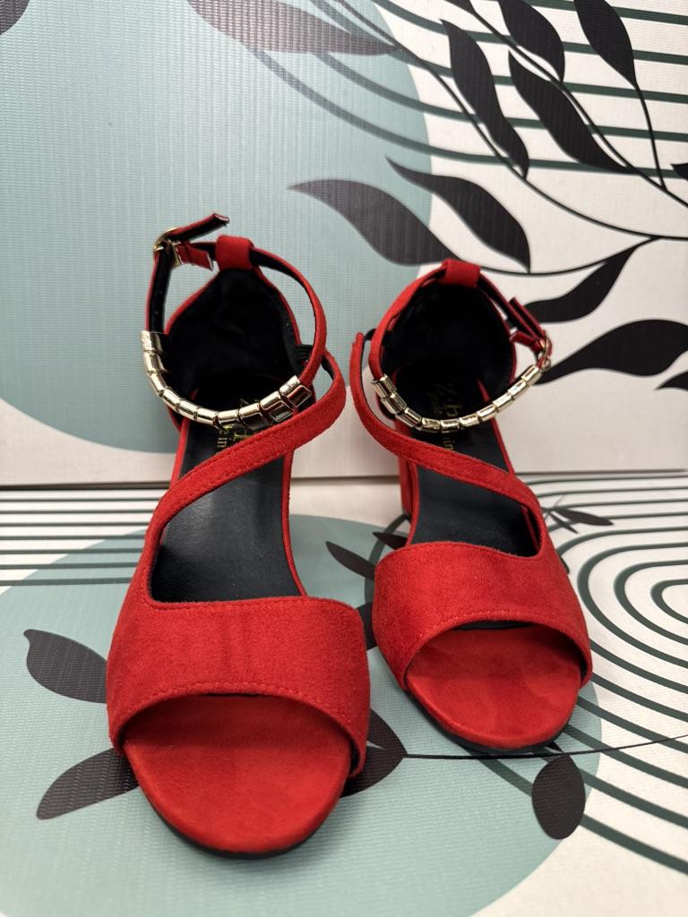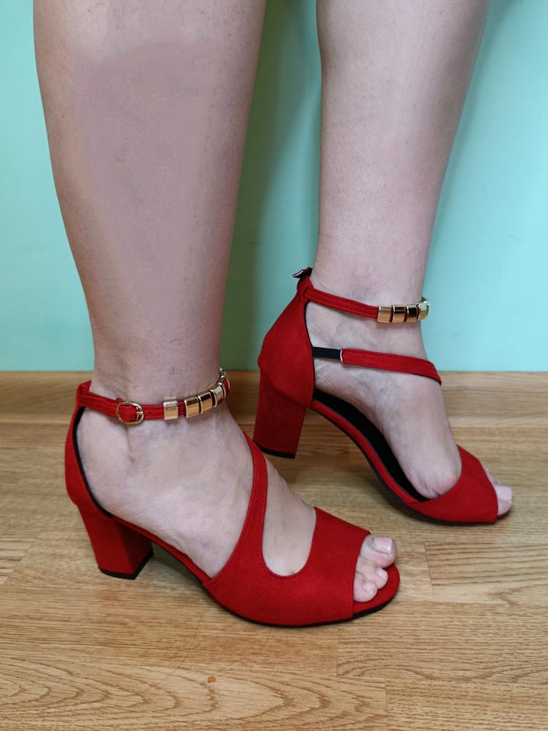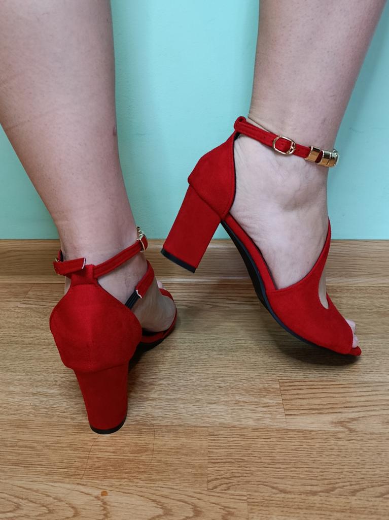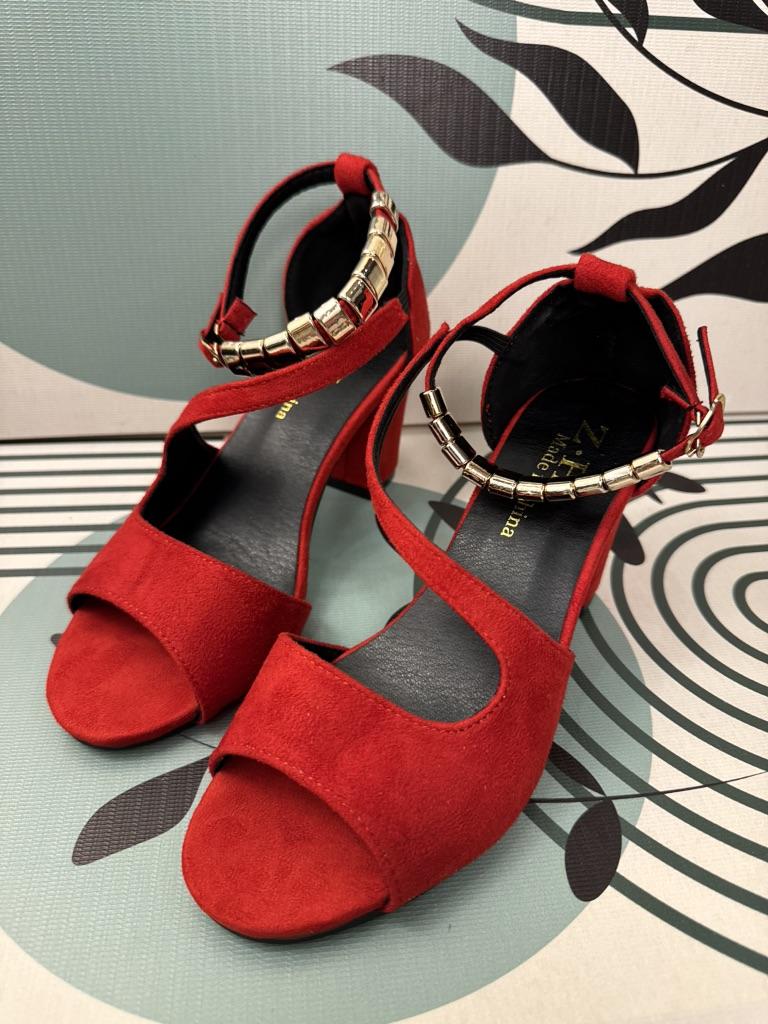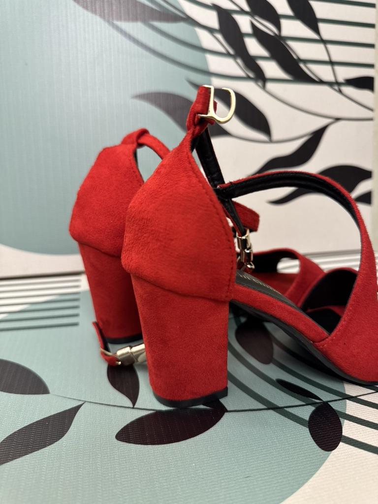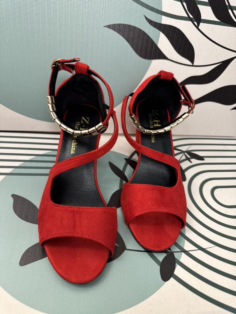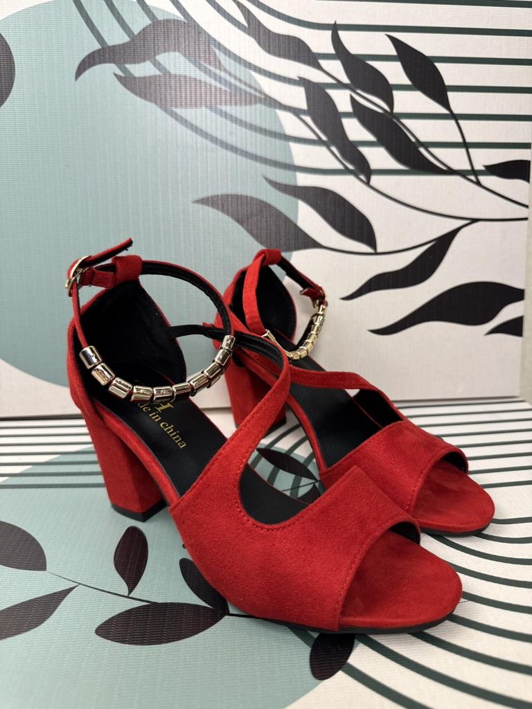 Velvet heeled sandals The heel is too high for me Look like sandals for ballroom dancing They look very beautiful, feminine The strap length is adjustable Size 39 fit size 39, everything is excellent Different sizes to choose from, available in 2 colors, black and red