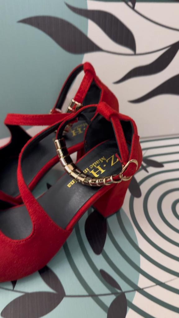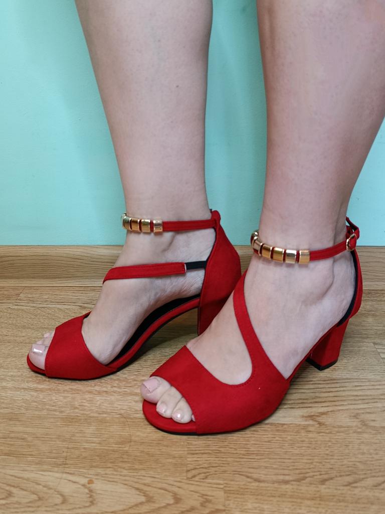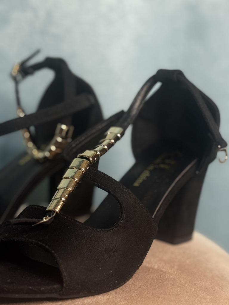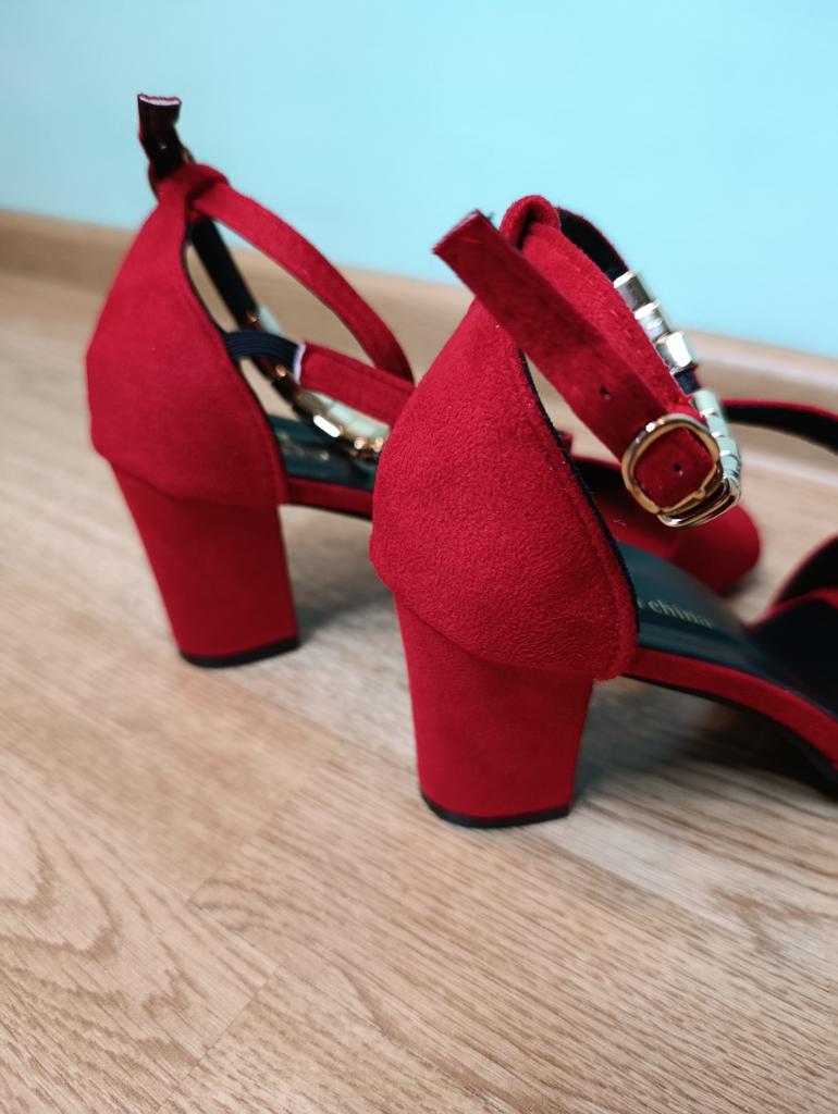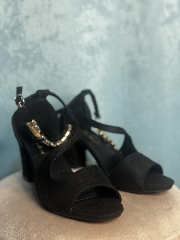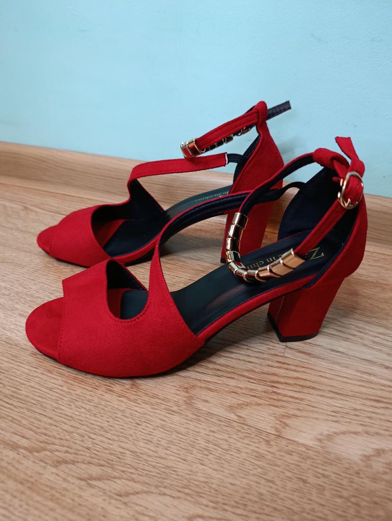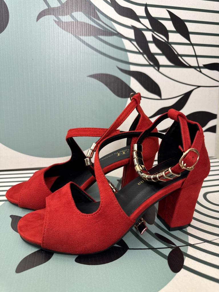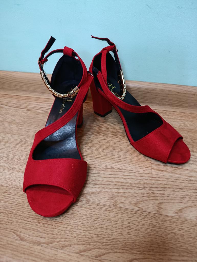 Velvet heeled sandals The heel is too high for me Look like sandals for ballroom dancing They look very beautiful, feminine The strap length is adjustable Size 39 fit size 39, everything is excellent Different sizes to choose from, available in 2 colors, black and red