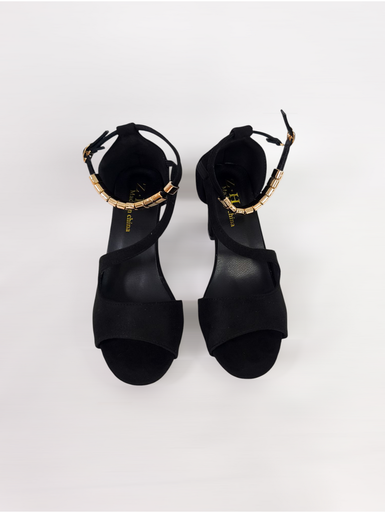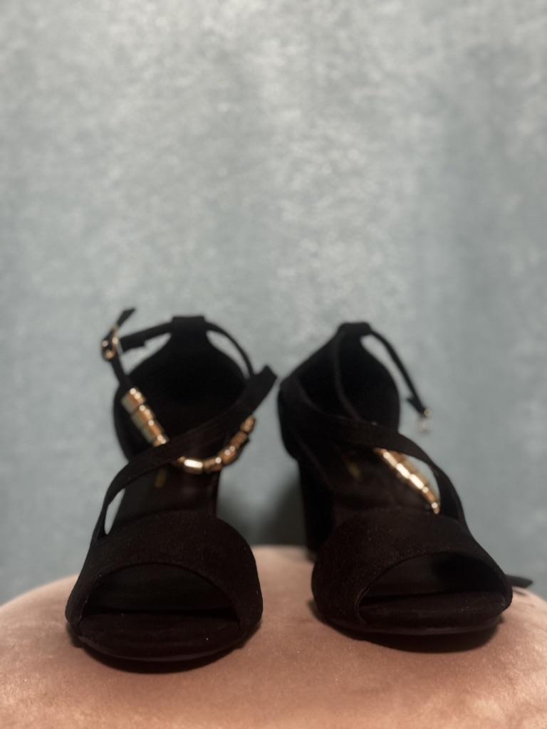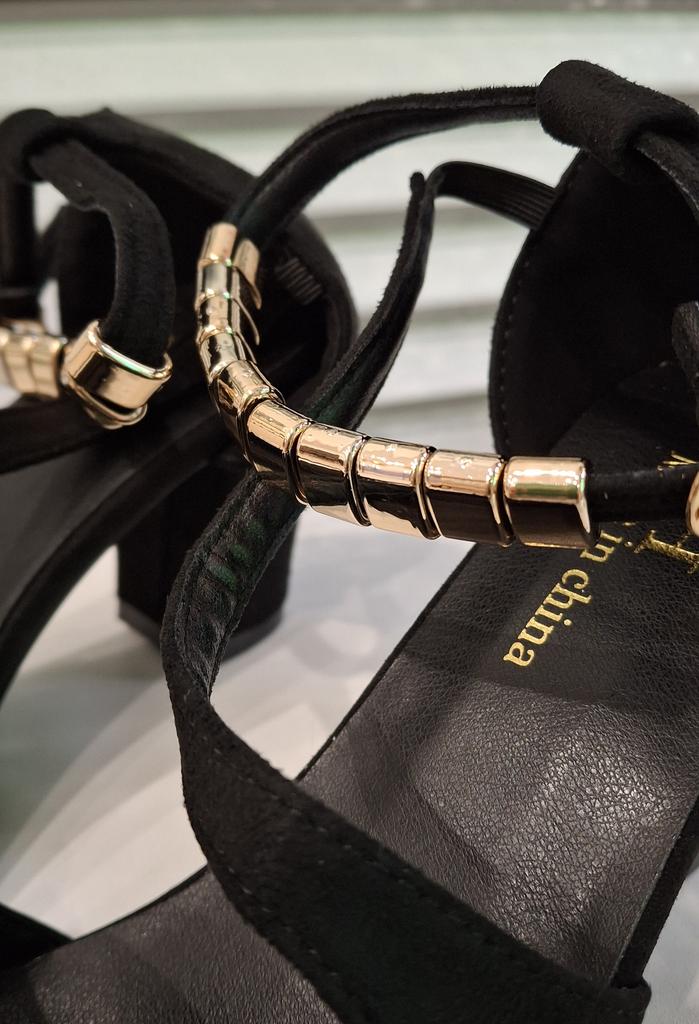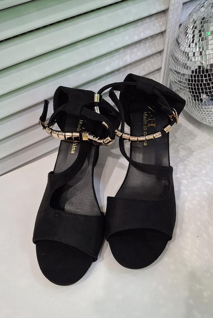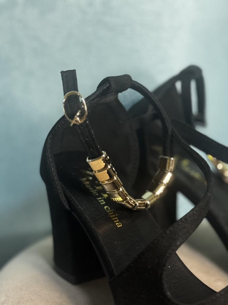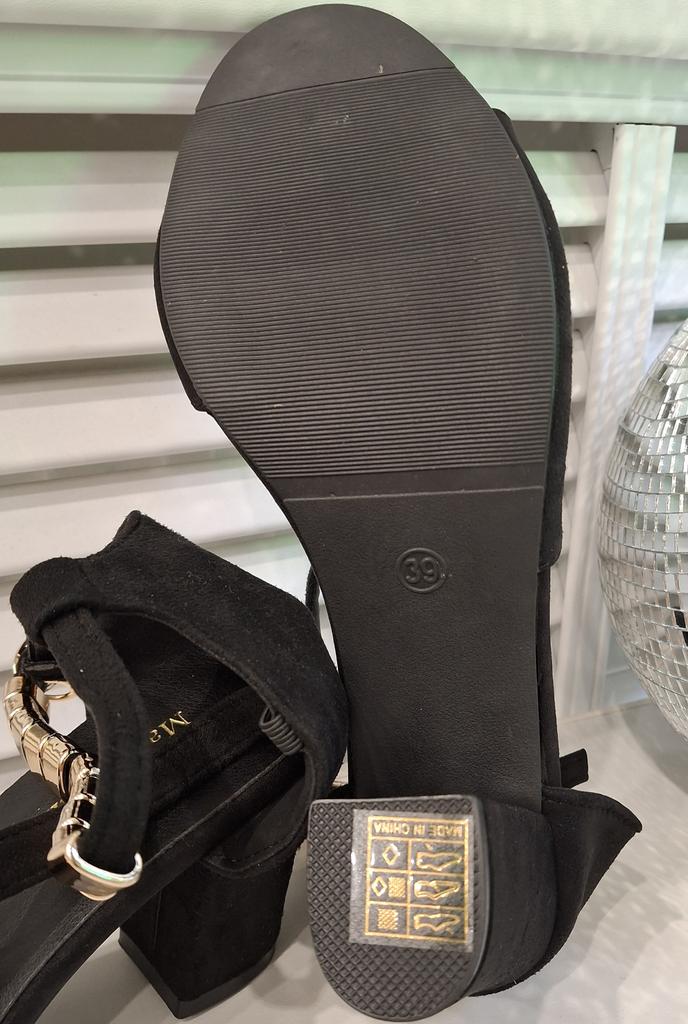 Stable heel sandals Faux suede, the heel is also covered in suede, looks great. The sandals have an unusual strap shape, look good on the foot.. Comfortable last, stable thick heel - in these you can stand all day without significant strain on the veins. They run small by one size, for my 37 I ordered size 38. The quality is not bad, without sticking out glue and threads, neat execution.