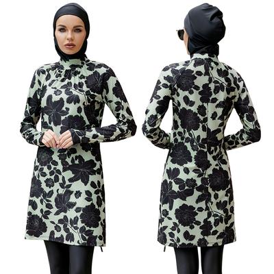 2-piece Muslim Women's Modest Leaves Butterfly Blue Print Seaside Swimsuit Full Coverage Swimsuit Set Beachwear Burkini Swimsuit Set Multi-color