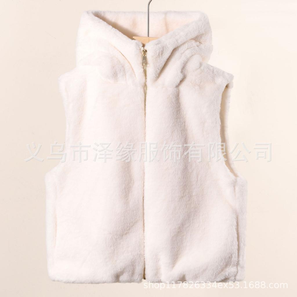 Wind Women's Clothing Artificial Fur Hooded Fur Adult Vest Autumn and Winter Imitation Rabbit Fur Hooded Thermal Top Winter