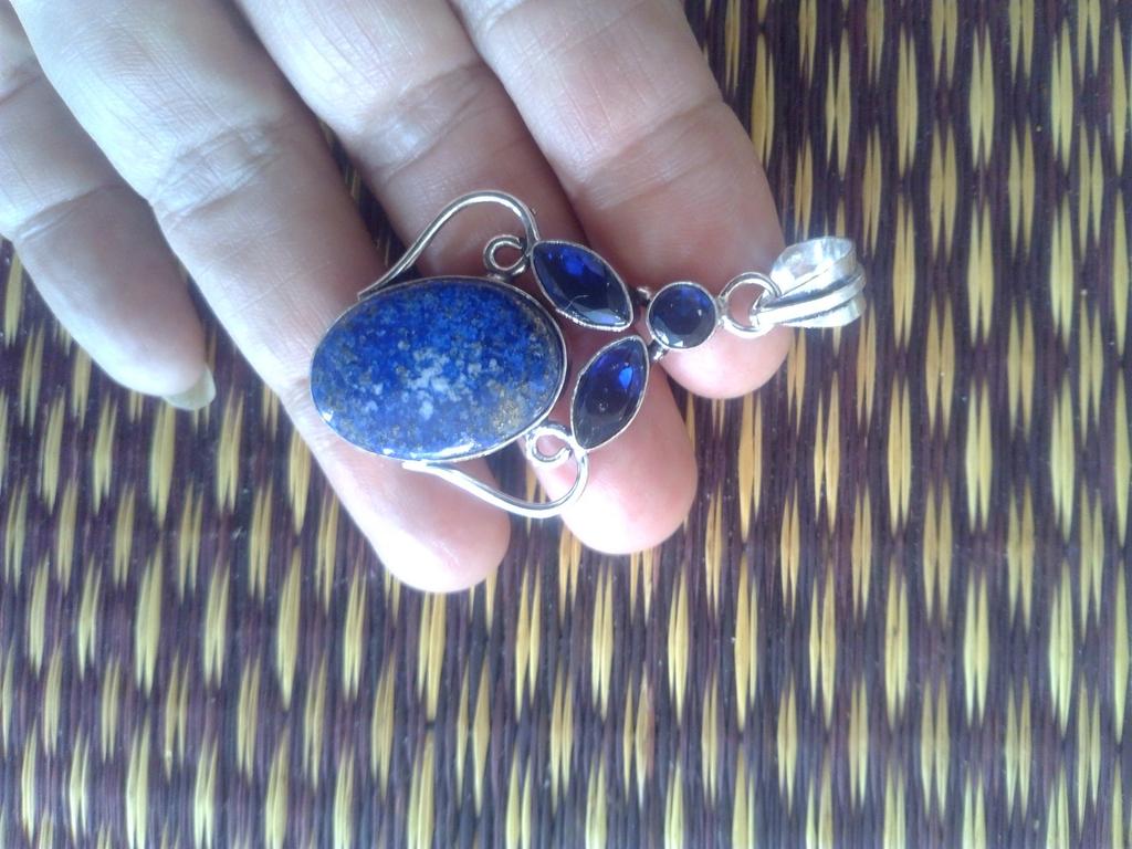 Natural Lapis Lazuli, Topaz 925 Sterling Silver Jewelry Pendant 2.21" v2W44
