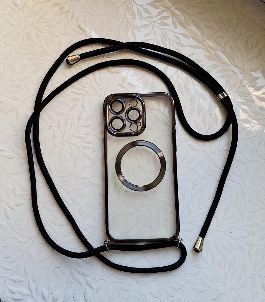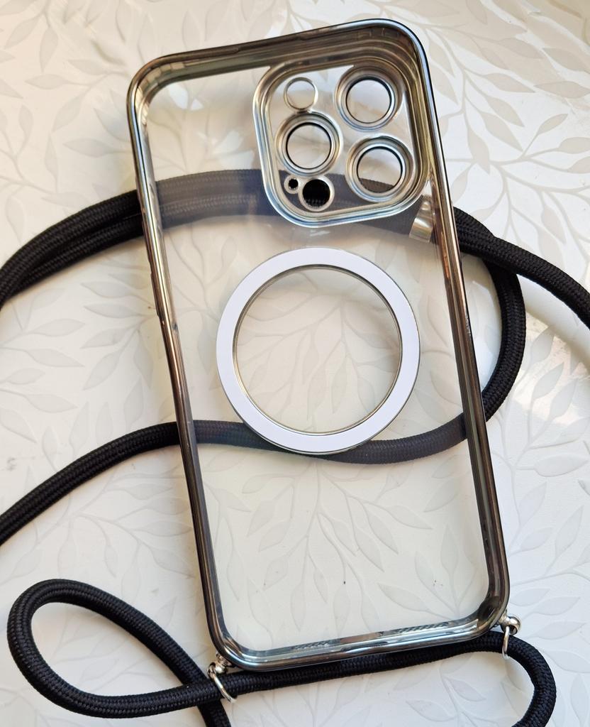 Plating Clear Magnetic For Magsafe Wireless Charging Cases For iPhone 17 Air 16 15 14 13 12 11 Pro Max Plus Crossbody Lanyard Necklace Cover
