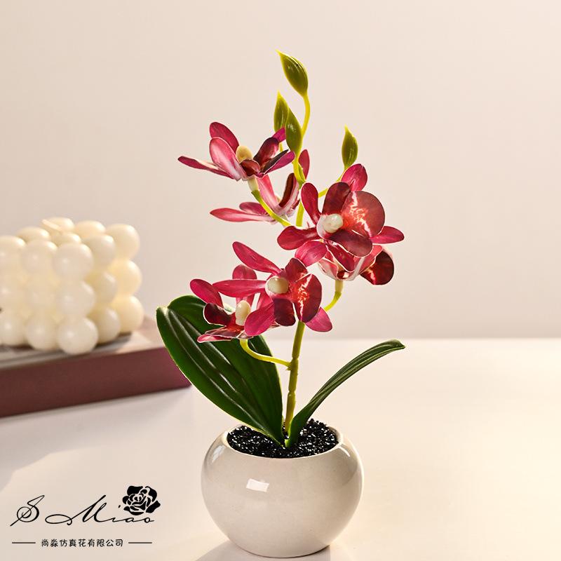 Artificial Orchids Bonsai with Vase,Vivid Orchid Flower Arrangement Phalaenopsis Flowers Pot for Home Office Decor Table Centerpiece House Decorations