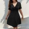Women's Fashion Casual V-Neck Twisted Knot Solid Color Short Sleeve Plus Size Dress