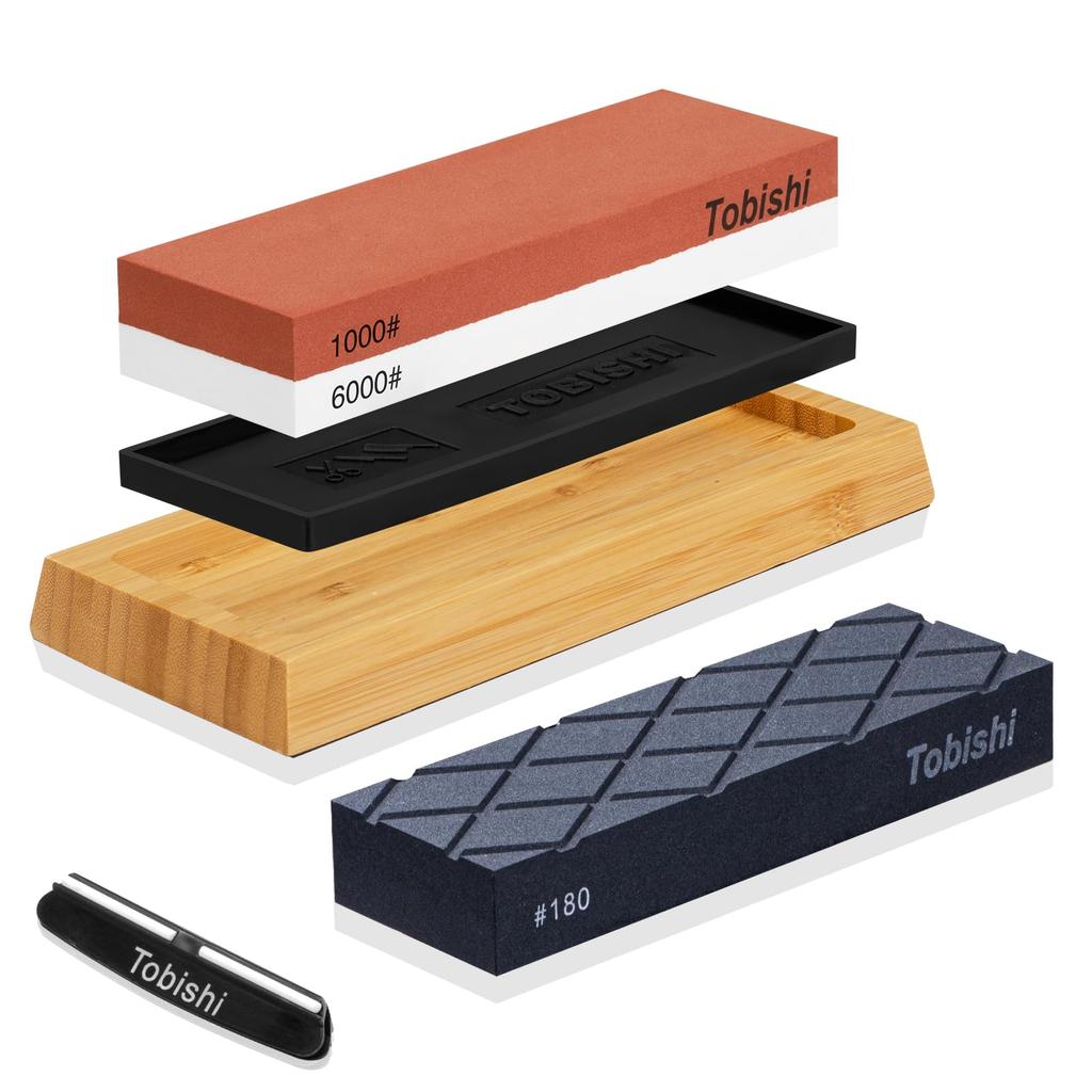 Whetstone Knife Sharpening Stones Surface Bamboo and Fixed Angle Ideal for Home Knife Coarse and Medium Whetstones Set, #1000 & #6000, Double-Sided