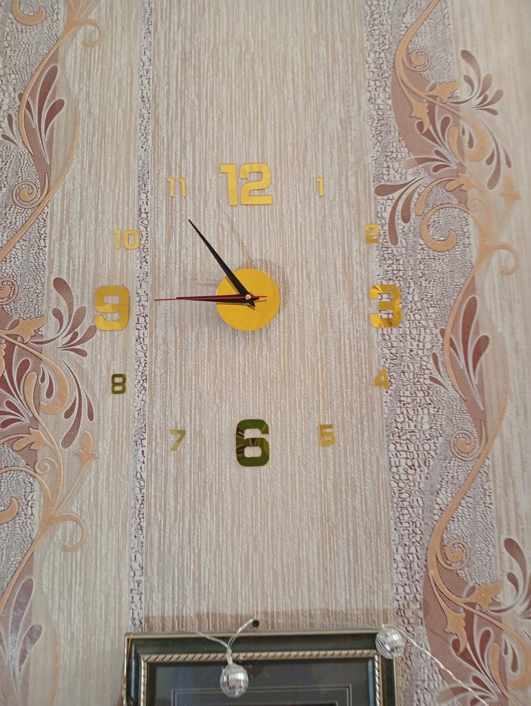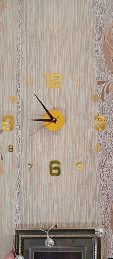 This clock really surprised me for the better. First of all, it is *completely silent* – there is no annoying "tick-tock" of regular clocks, so it is perfect for a bedroom or even a home office. The design is *modern and clean*, really adds a luxurious touch to the wall without overpowering the room's design. The material – *acrylic*, is lightweight but looks really good from afar, gives a sense of quality. The assembly was simple, you just need to put in an AA battery (not included, important to know in advance). The size varies depending on the layout, which allows for a bit of play in the design, and that's nice.. If you're looking for a beautiful, quiet, and stylish watch without breaking the bank – this is a great choice. I'm satisfied and recommend it completely.