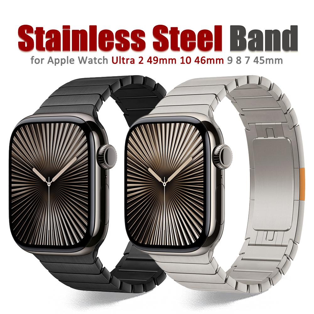 Titanium Color Bracelet for Apple Watch Ultra 2 49mm 10 46mm Stainless Steel Luxury Band for IWatch 9 8 7 6 5 4 SE 45mm 44 Strap