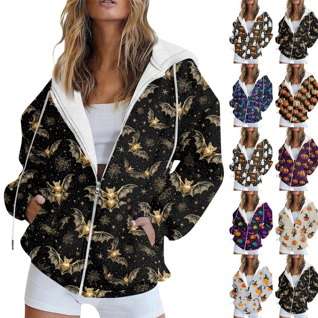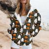 Women's Fashion Casual Halloween Printed Sweatshirt Long Sleeve With Pocket Cardigan Jacket Zipper Hoodie Coat