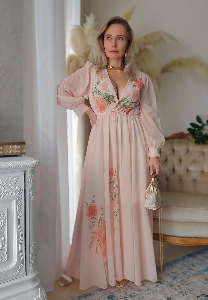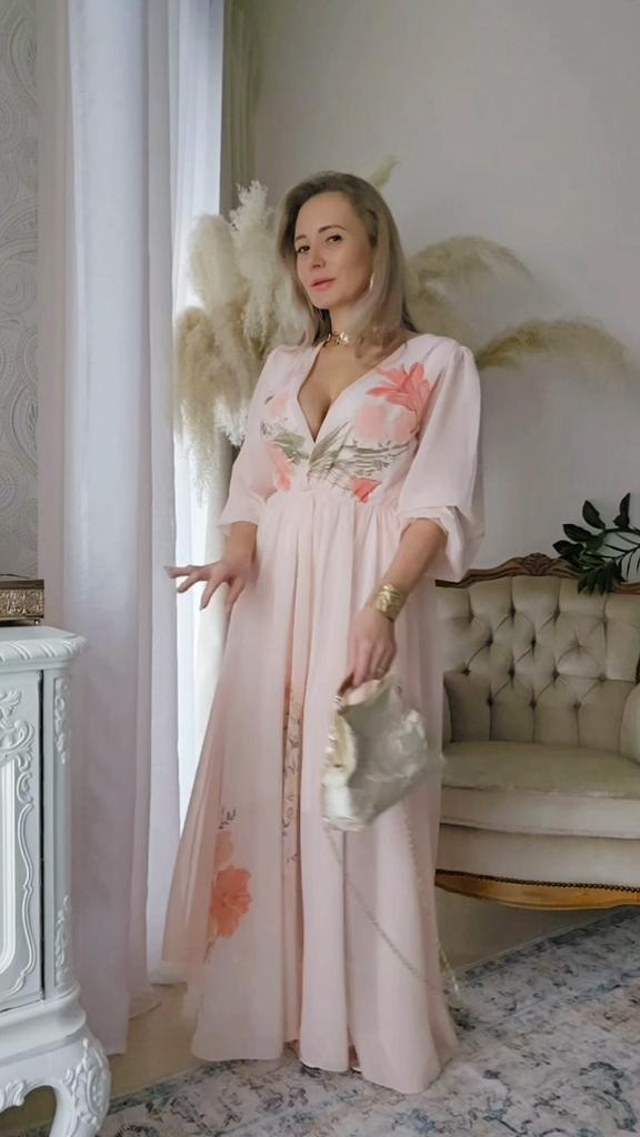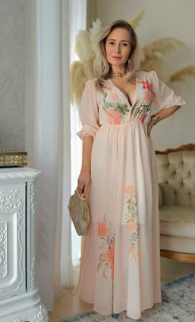 DAFIFY Women's Fashion Spring Fall Flower Pattern Print Long Sleeve V-Neck High Waist Casual Dresses