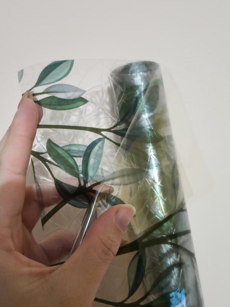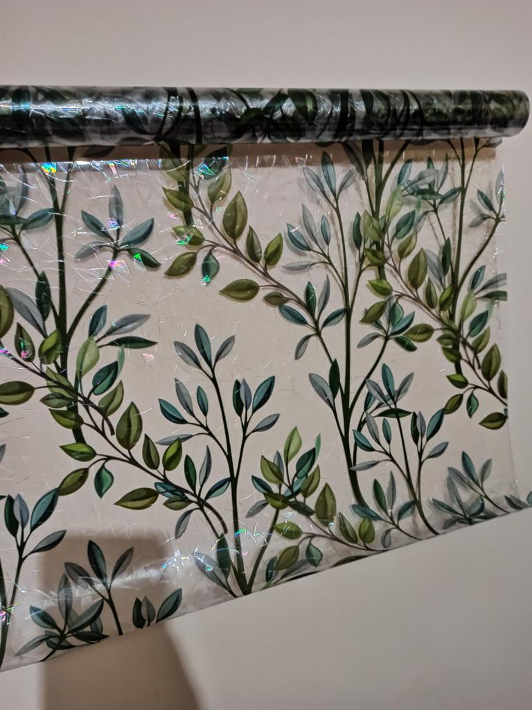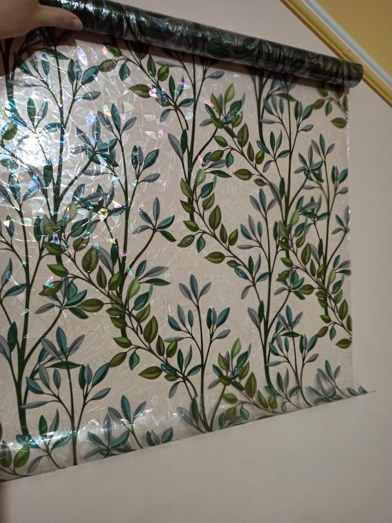 Static Cling No Glue Frosted Glass Film 3D Laser Leaf Mimosa Privacy Film Light Filtering Opaque Glass Sticker For Home Office Decoration