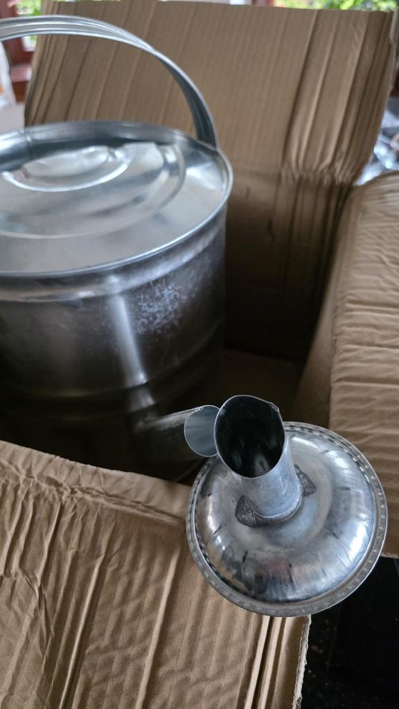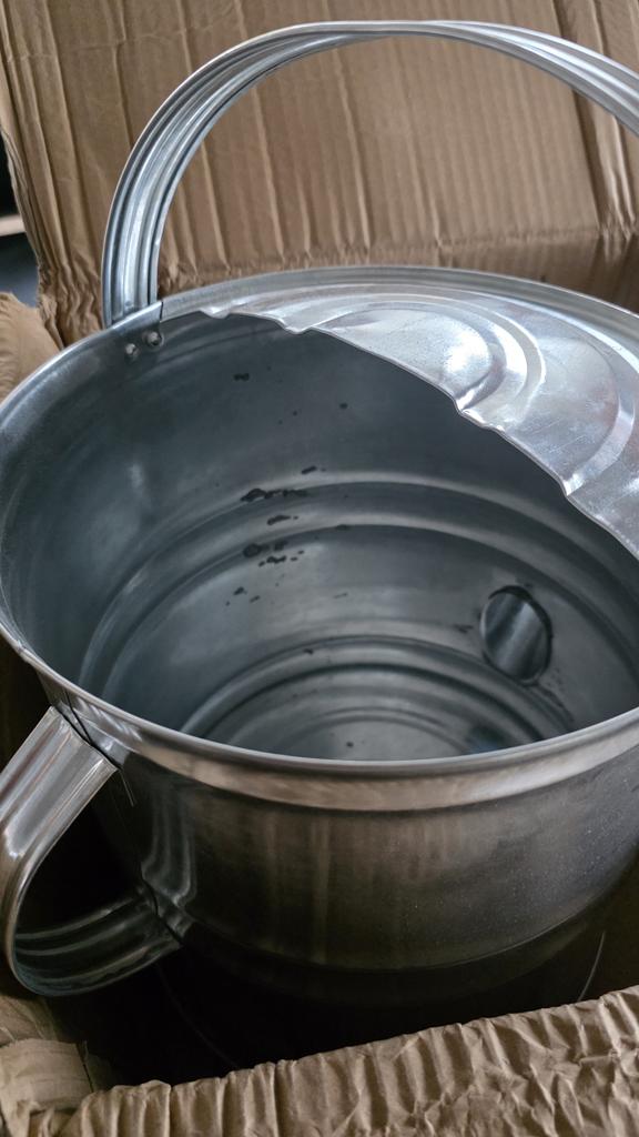 Good morning. In the item description, the seller wrote: Stainless steel watering can. Unfortunately, the watering can is not made of stainless steel, but of sheet metal (black) and galvanized! It is not made of the material that is in the description: STAINLESS STEEL. The packaging is dented, the watering can is dented. There are traces of rust inside.. I'M RETURNING!