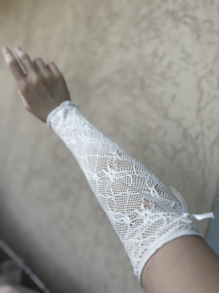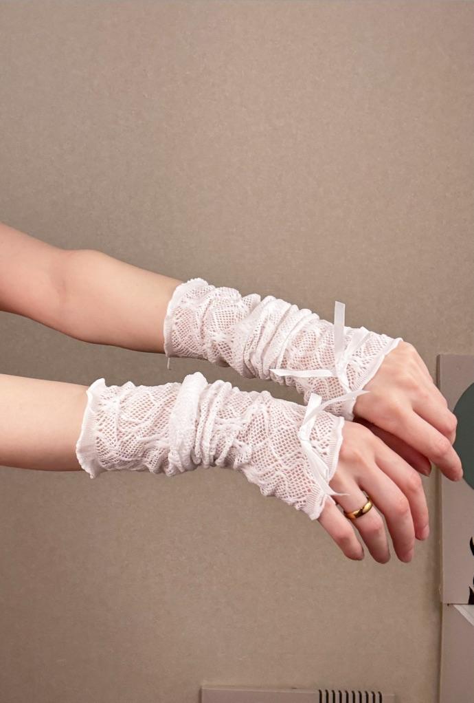 Lace Ruffle Y2k Gloves Fingerless Gloves Mittens JK Lolita Kawaii Women Mesh Fishnet Bowknot Black White Gloves UV Protection