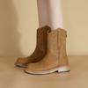 Grape Mom 2025 New Embroidered Medium Tube Knight Boots V-mouth Western Cowboy Boots Small Thick-soled Heightening Boots