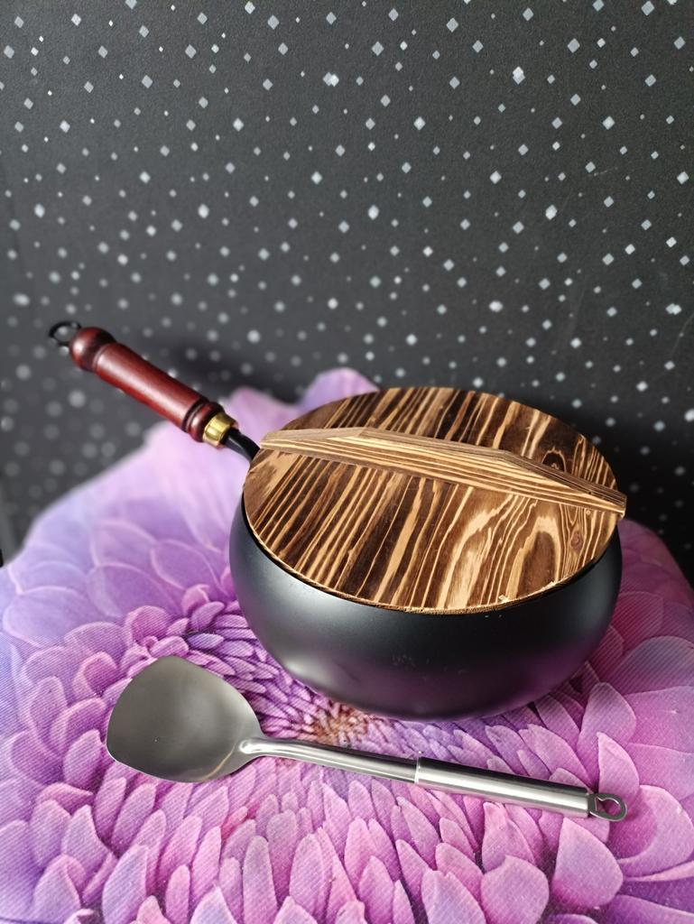 Versatile Culinary Companion: Unleash the thick design cooking pot's multifunctional prowess with 7-in-1 capabilities suitable for various cooking styles. From stir-fries to soups and fried delights, its 4cm depth caters to diverse culinary needs. Lightweight yet robust, it empowers effortless one-handed operation, complemented by a heat-resistant wooden handle for secure grip.