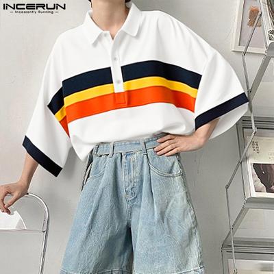 INCERUN Oversized Men Casual Loose Half Sleeve Stitching Striped Shirts