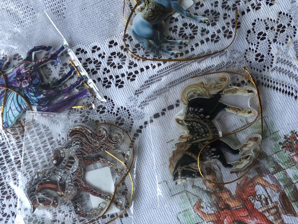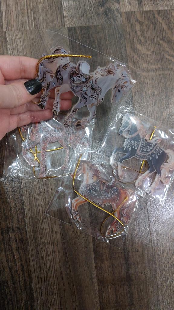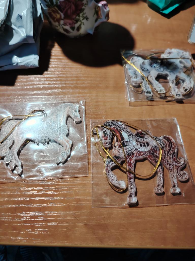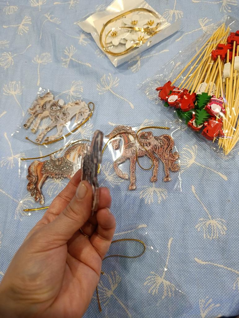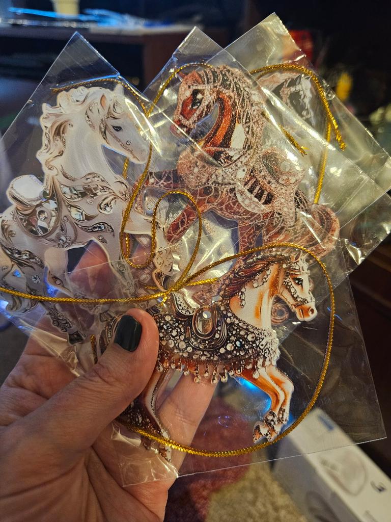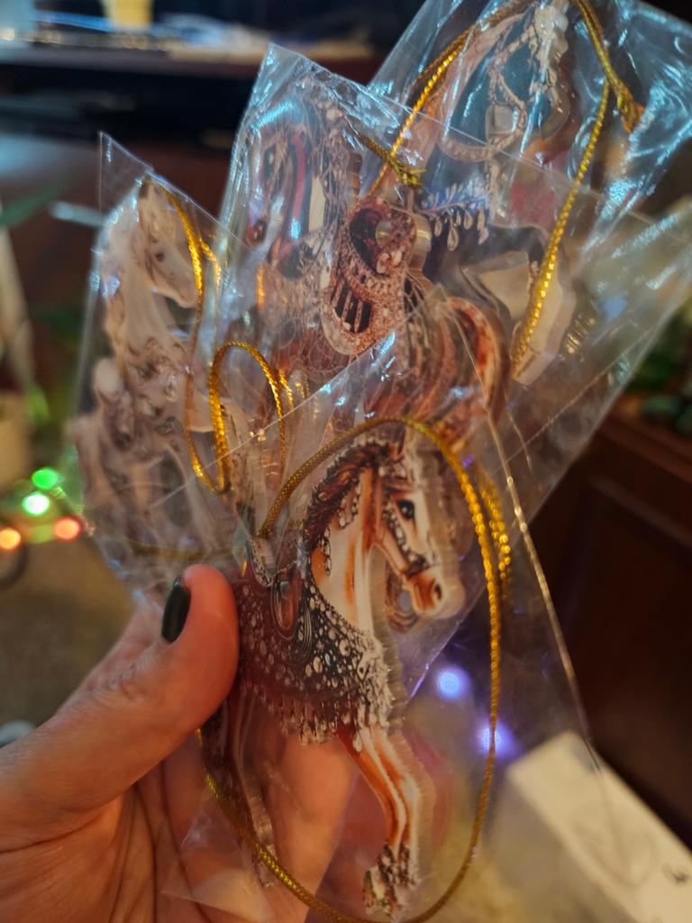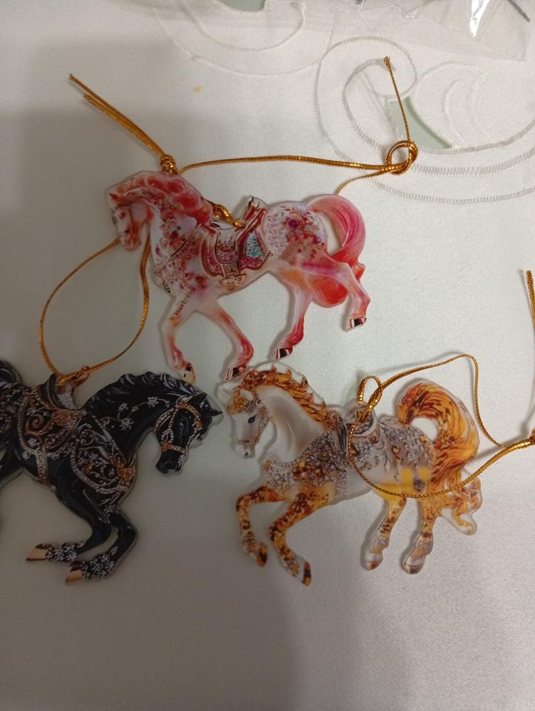 Very colorful, miniature. I bought several different ones. They will, for sure, decorate the Christmas tree. And you can gallop into the new year. Happy New Year to all.