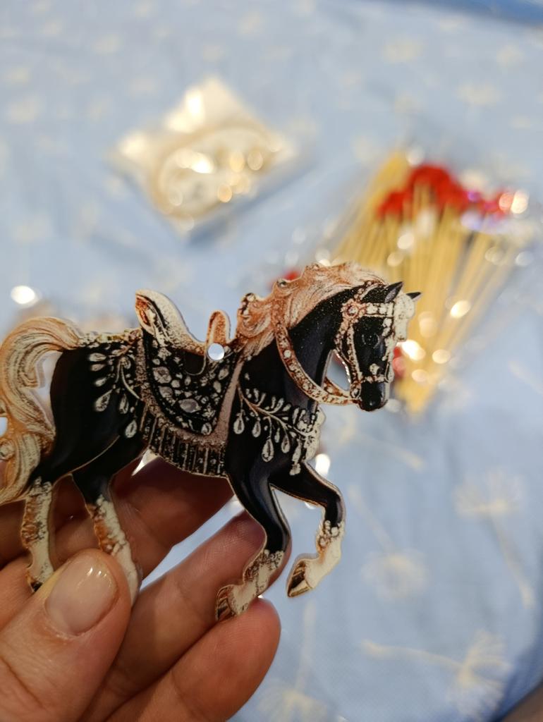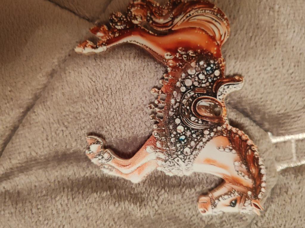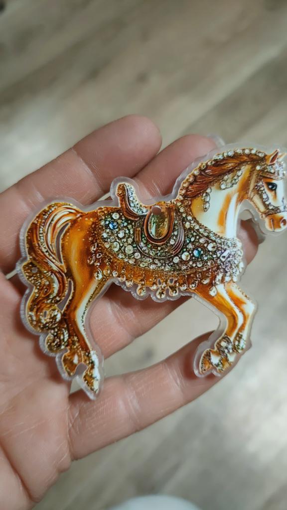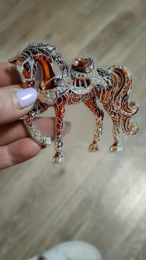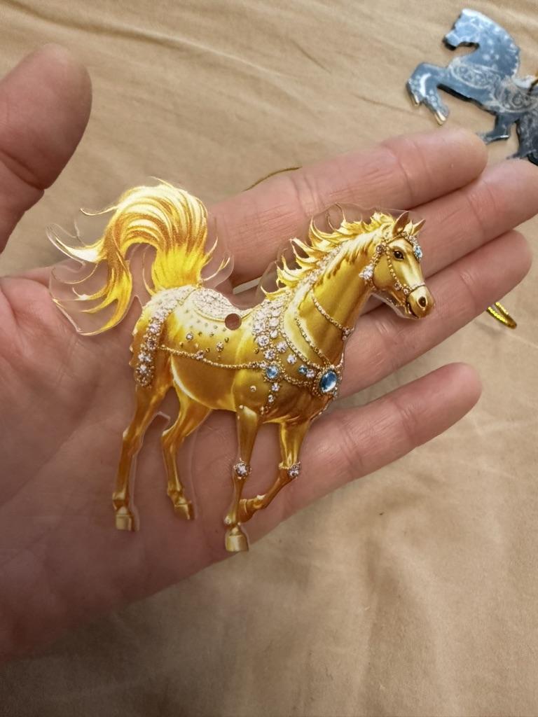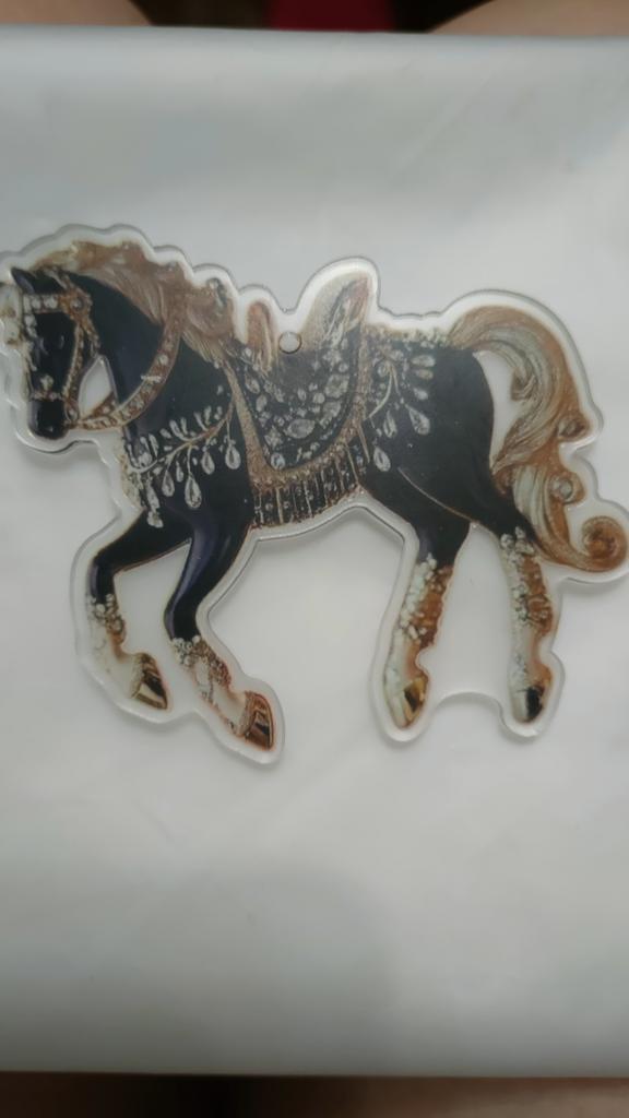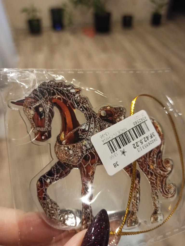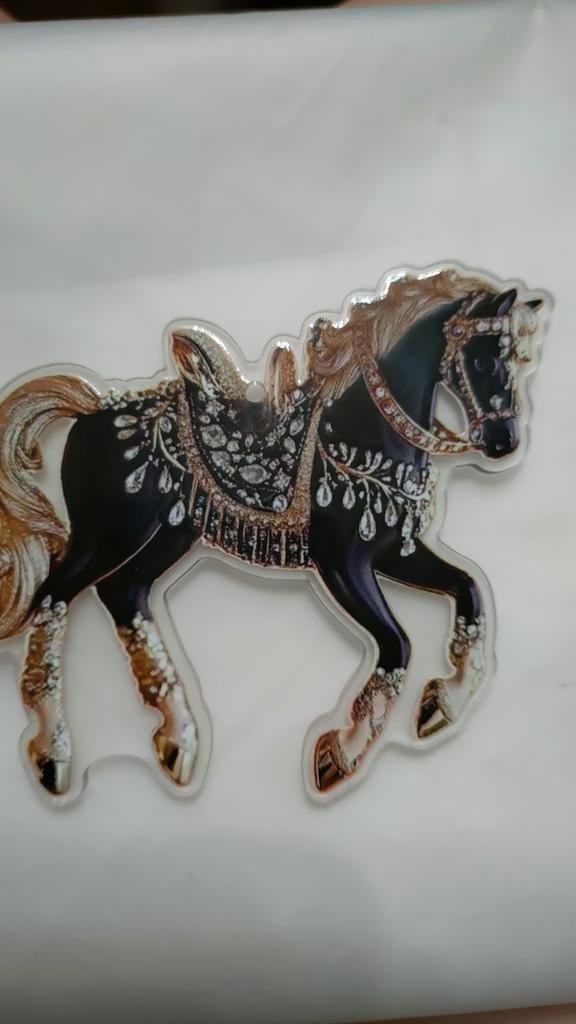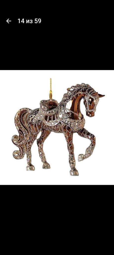 I was waiting for the order for the New Year since October. The order arrived after the New Year. I was disappointed with the order, it's just ordinary plastic with a sticker of a horse. There are no rhinestones.