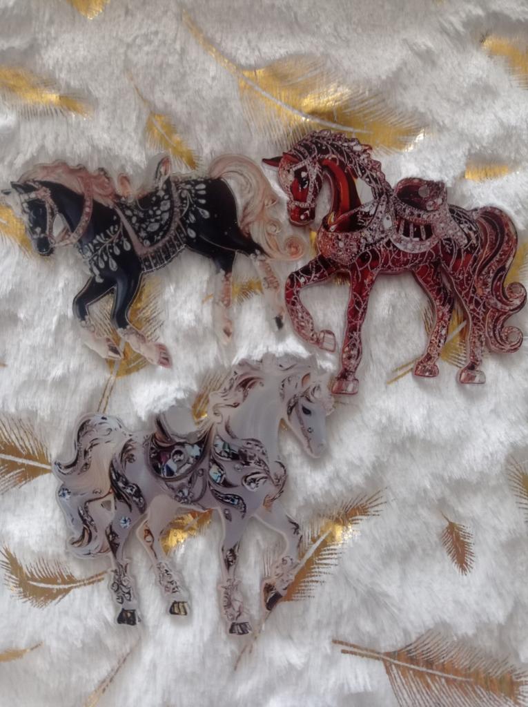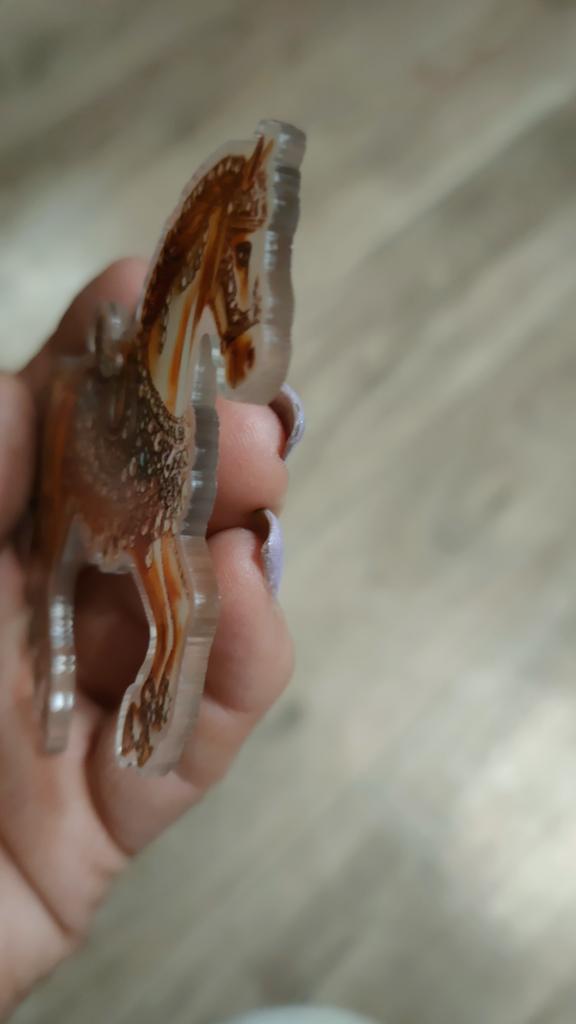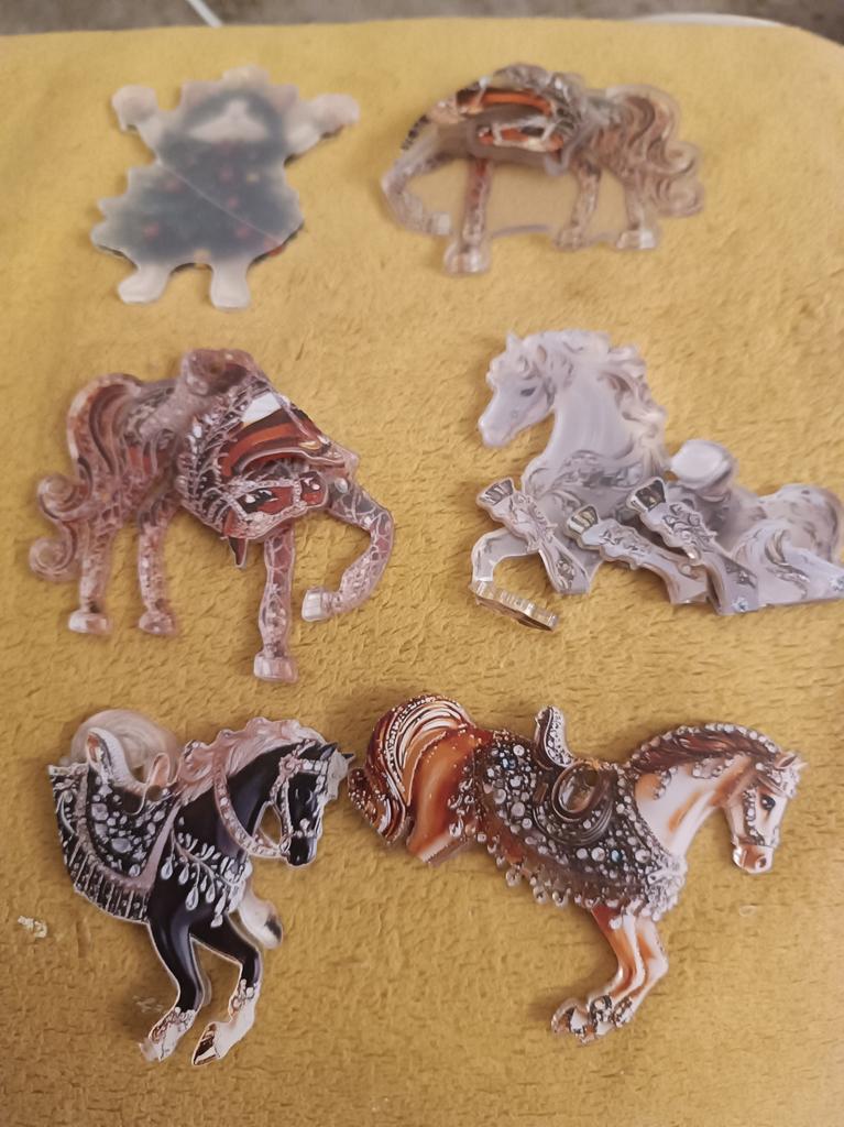 I thought they would be three-dimensional, but they turned out to be flat pictures on a hard base. Quite nice, but I regret not reading the reviews. I didn't notice right away that one horse broke in transit π it's held on by film on one side, now it's visible that it's made on the basis of transparent plastic, like plexiglass.