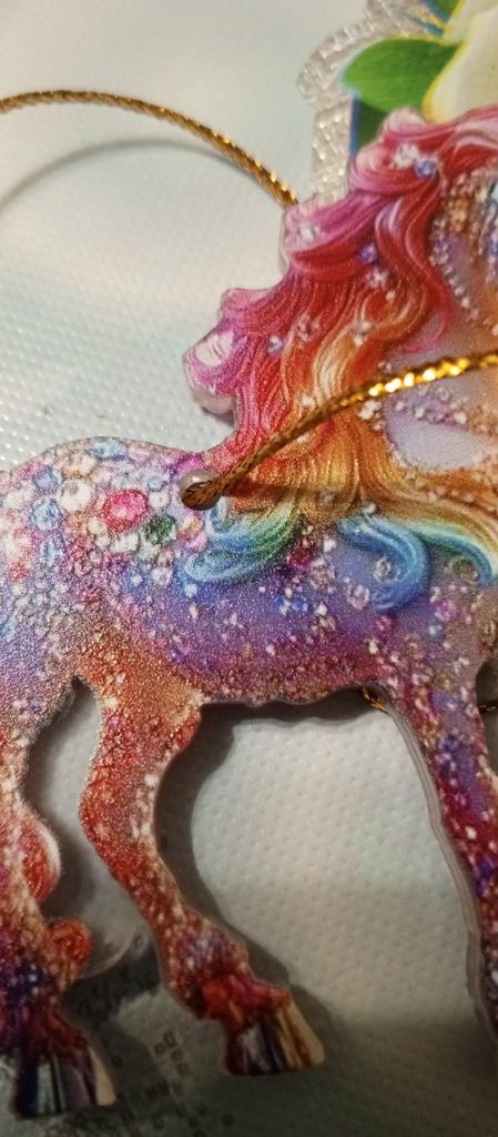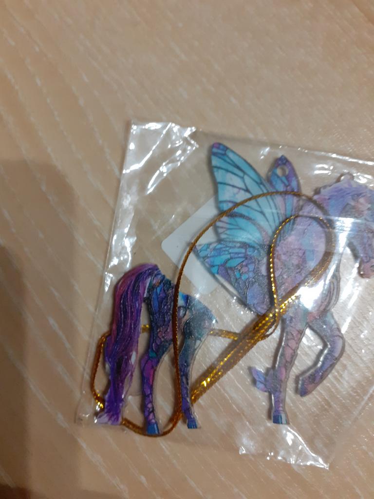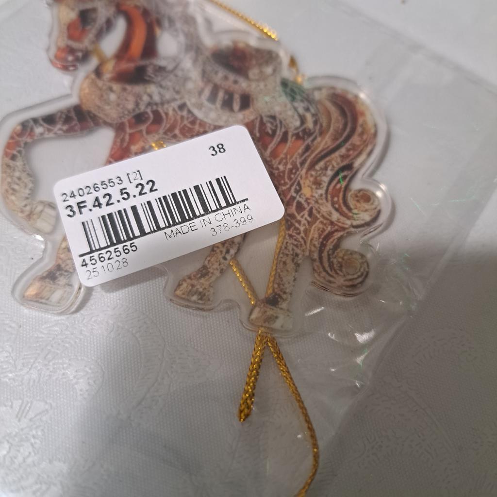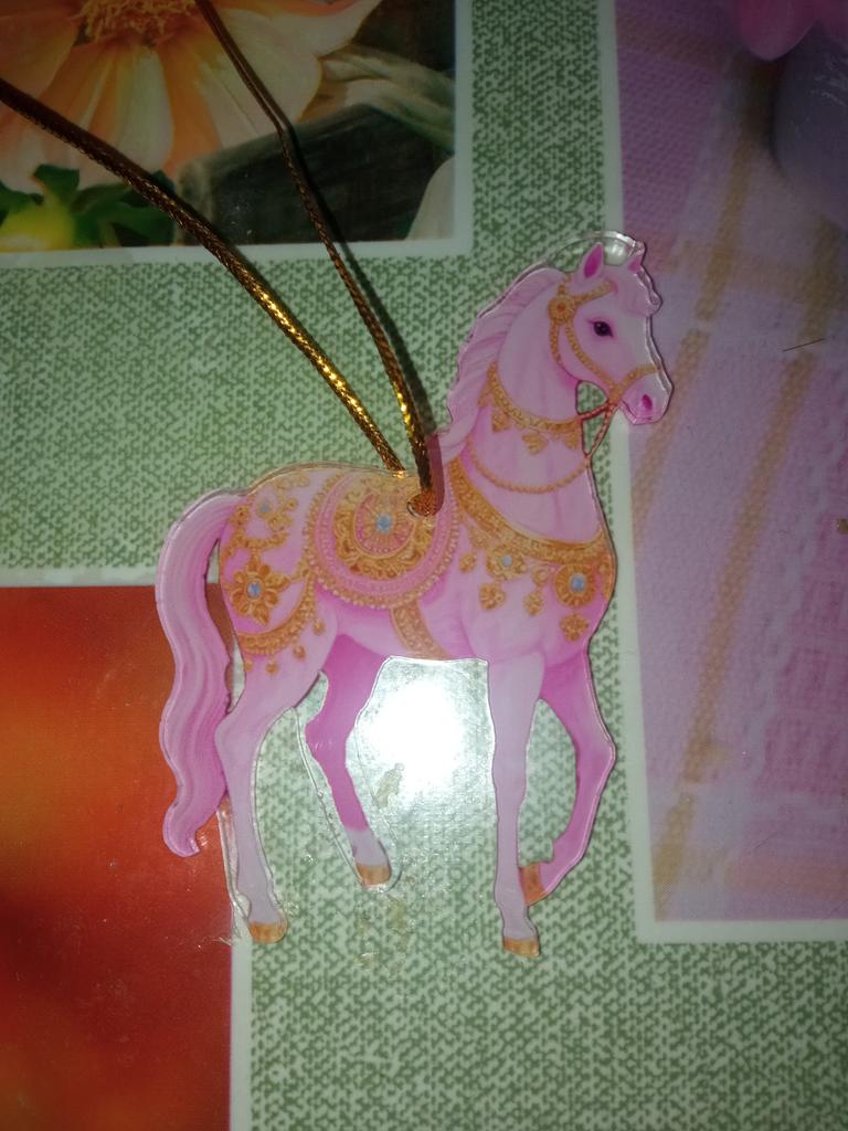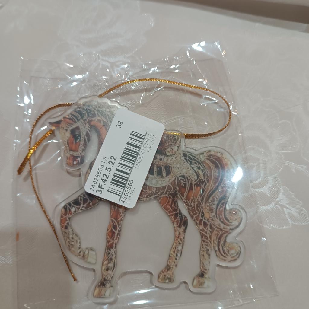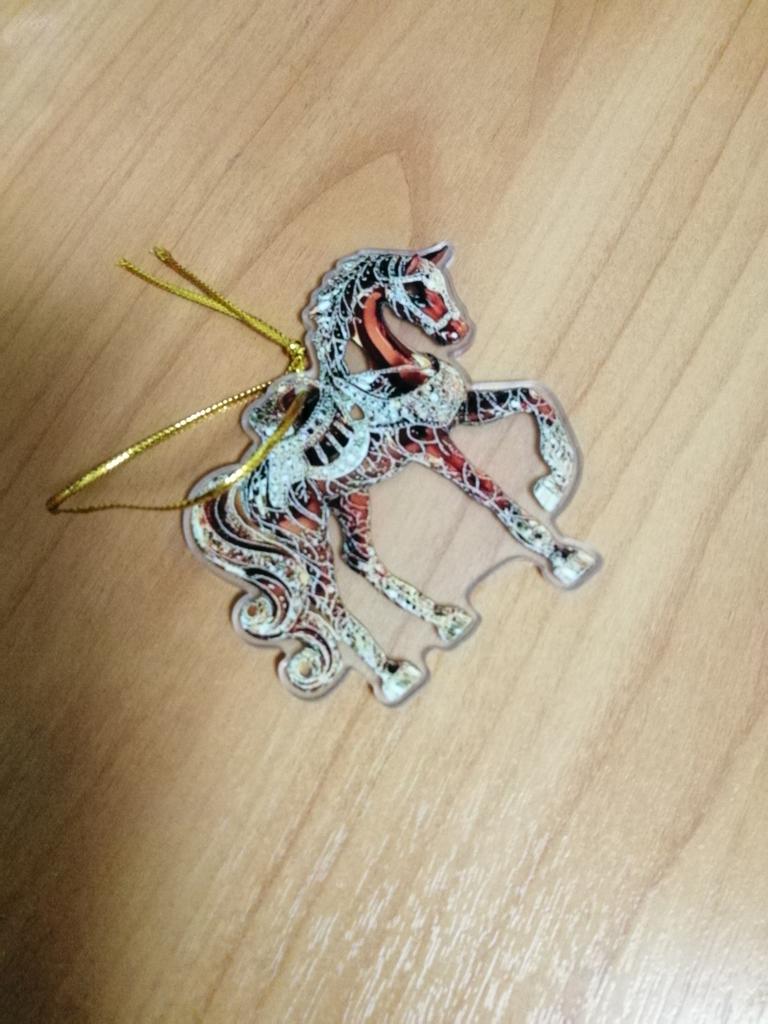 Flat little horse, very beautiful. The ribbon is next to it in the package, it needs to be threaded through the hole and hung on the Christmas treeπ²