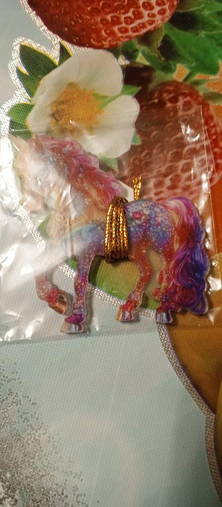 The drawing is beautiful and double-sided. Lurex string. Cute little horse. I like it.