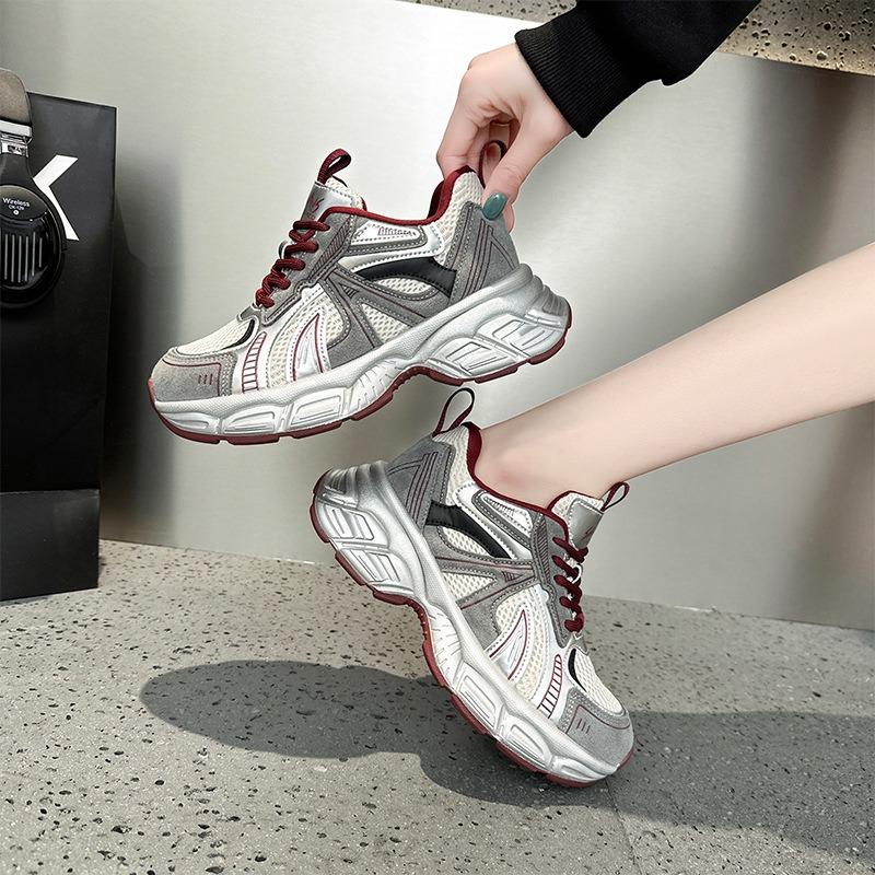 Leather Dad Shoes Women's Spring New Thick-soled Non-slip Casual Sports Shoes Trendy Color Matching Lace-up Student Shoes Women