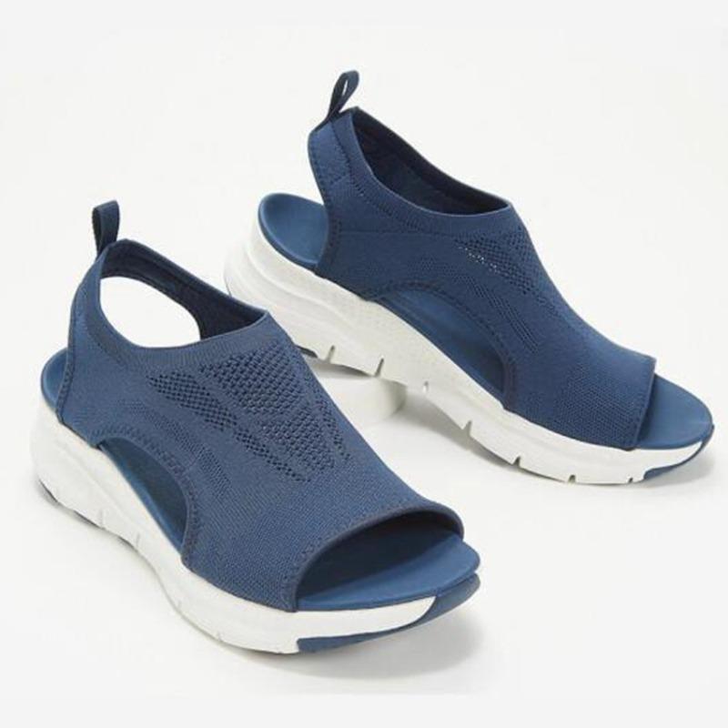 Large Size Thick-bottomed Wind Knitted Rhinestone Hot Drill Breathable and Lightweight Women's Elastic Fly-woven Casual Sandals