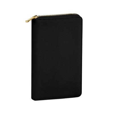 KASSAI Cowhide Leather Passbook Case with Large RFID Skimming Passport and Card Case Accordion-Style Capacity, Protection, (Black)
