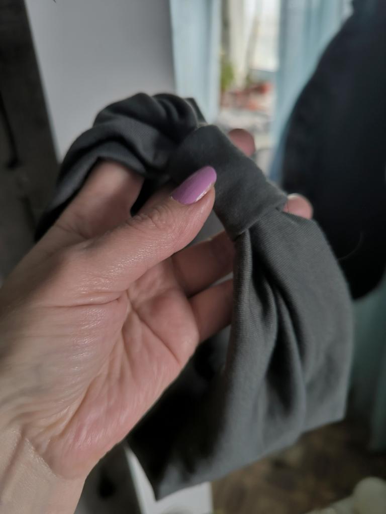 This bandana is simply stunning! It's very comfortable, soft on the head, and doesn't press at all. The boho-vintage design with the knot in front adds a special touch to the look, and it blends well with both everyday clothes and a slightly more dressed-up style.. The elastic at the back is elastic and holds well without slipping, even when I move a lot. I use it both when I want to hide my hair on a less successful day and as a fashion item. A solid color that matches any outfit. Highly recommend, especially for those who love a feminine and comfortable look without much effort.
