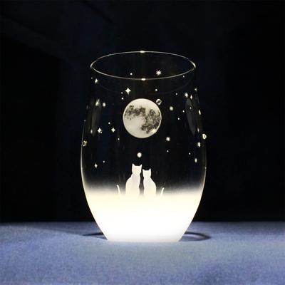 Atelier Kees Cat Motif Original Design Tumbler Glass the Full Moon Night Sky Glass, (View Together)