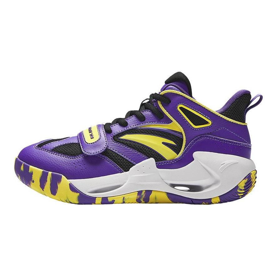 Anta Kids Wind Tunnel Synthetic Leather Mesh Professional Basketball Shoes Men Sneakers Yellow Purple A12441108-5