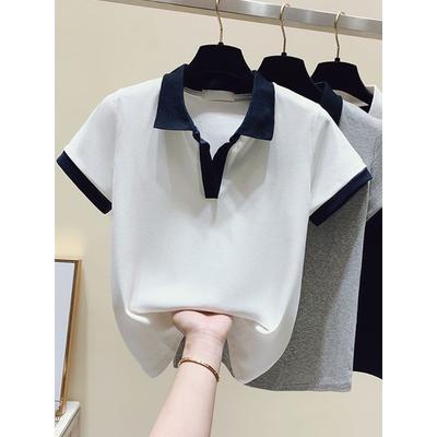 Spring New Women's Clothing Versatile Contrast Color Short Sleeve Lapel Simple Stitching Simple Polo Shirt T-shirt 5644155