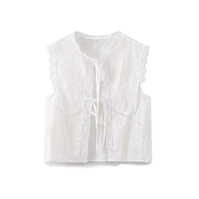 Summer New Product Women's Clothes Minimalist Style V Neck Sleeveless Cotton Laminated Decoration Cut Out Embroider Shirt 2971885