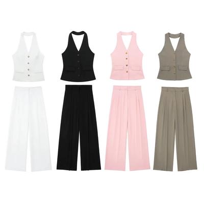 Women's Backless Halter Neck Vest, Pleated Wide Leg Pants
