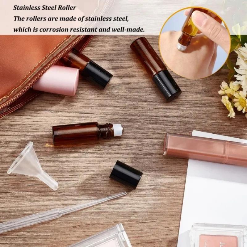 2/5pcs 5mlRollerball Dispensing Bottle Amber Perfume Essential Oil Dispensing Bottle Sample Bottle Travel Portable Storage Bottl