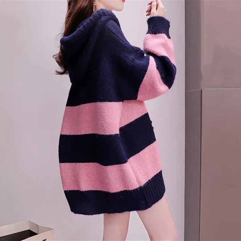Loose Lazy Wind Hooded Sweater Women's New Autumn Loose Large Size Knitted Sweater Medium and Long Coat