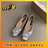 Flat Bottom Silver High-end Square Head Commuting Doudou Shoes, New Black Rhinestone Single Shoes In Autumn 2025 Women's Shoes