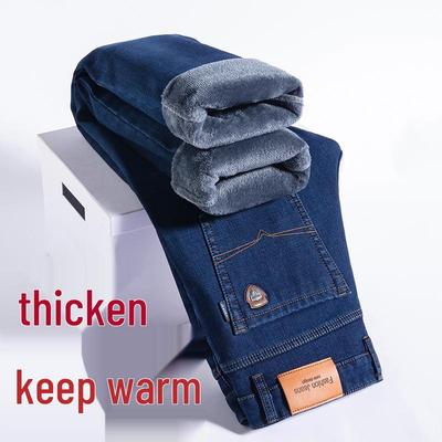 Fashion High Quality Autumn and Winter Loose Jeans Stretch Pants Straight Leg Business Casual Plus Fleece Thick Men's Pants