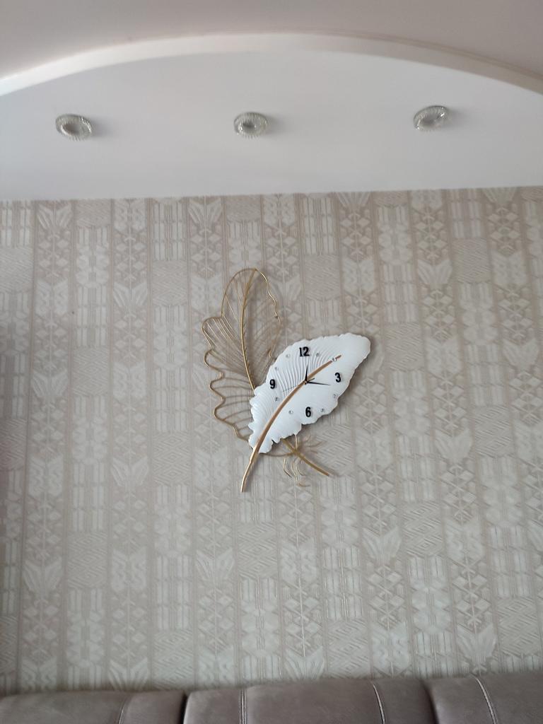 Three-Dimensional Iron Feather Wall Art with Clock for Sofa and Bedroom Decor