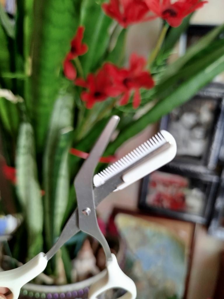 A good gadget, two in one. You don't need to use a comb and scissors. And with one hand you can put your eyebrows in order.
