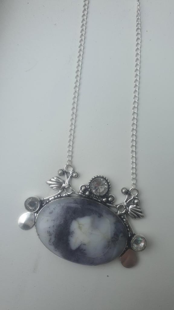 Dendrite Opal Gemstone 925 Sterling Silver Gift Jewelry Necklace 18"