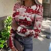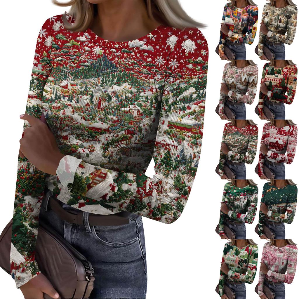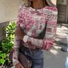 Women's Slim Bottom T-shirt Fashion Casual Gradient Printing Round Neck Pullover Long Sleeve Top