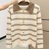 Autumn and Winter New Lapel Striped Knitted Sweater Lace Splicing Long-sleeved Women's Sweater