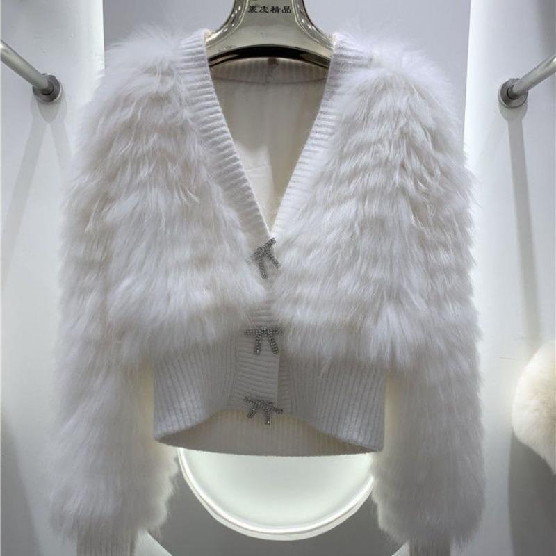 Autumn and Winter New Coat Fleece Top Short Rhinestone Coat Black One Size Long Sleeve